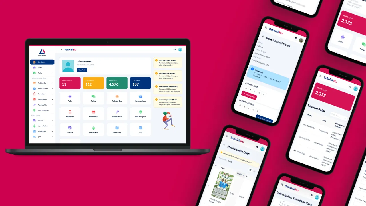 SekolahKu adalah Sistem Manajemen Sekolah Terintegrasi Berbasis Web. Dengan berbagai macam fitur yang ada, mempermudah manajemen sekolah untuk mengelola data. Seperti absensi harian untuk kehadiran Siswa, perizinan keluar untuk Siswa dan Guru, sistem point, serta rekapitulasi pembayaran SPP siswa.
